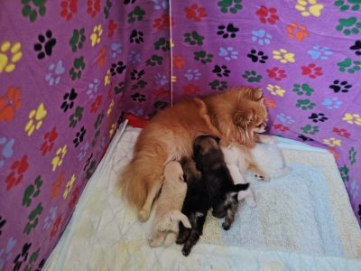 Imamo mušku i žensku štenad u krem i oranž samurovina boji.